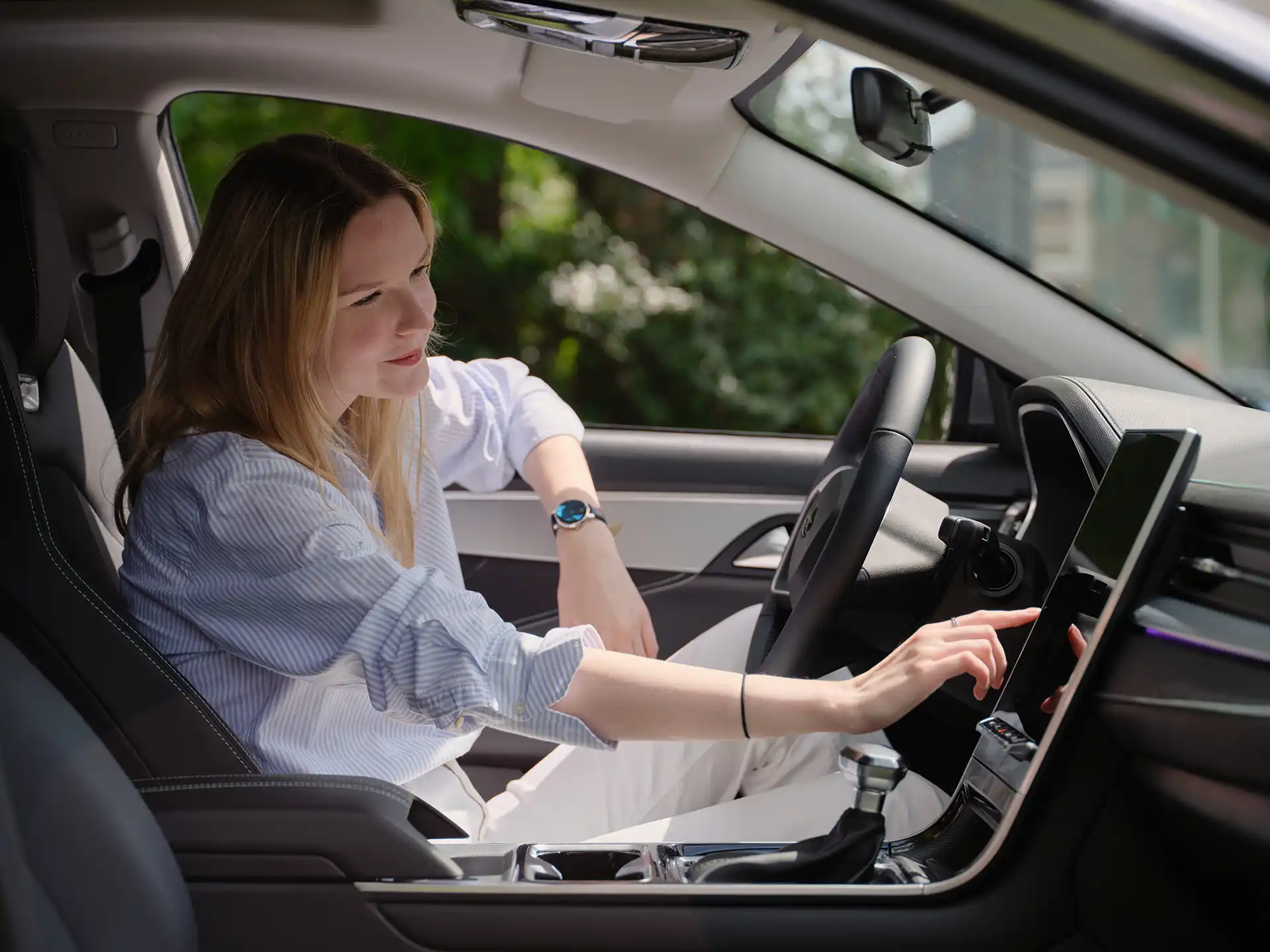 Duży pionowy ekran dotykowy i cyfrowy zestaw wskaźników tworzą nowoczesne centrum dowodzenia. Starannie dobrane materiały, czyste linie i intuicyjny układ funkcji zamieniają wnętrze w Twoją prywatną strefę komfortu.