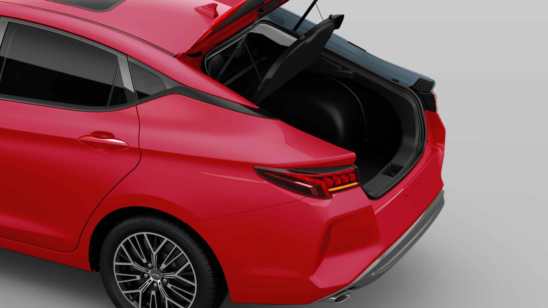 Nadaje pojazdowi dynamiczny i sportowy charakter, podkreślając jego moc i osiągi.